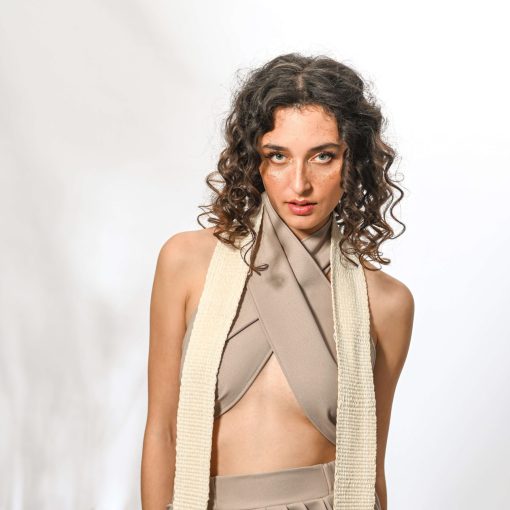 Појасот Avena се одликува со елегантни, чисти беж линии со суптилни бели акценти, нудејќи минималистичка естетика која лесно се комбинира со секоја гардероба.