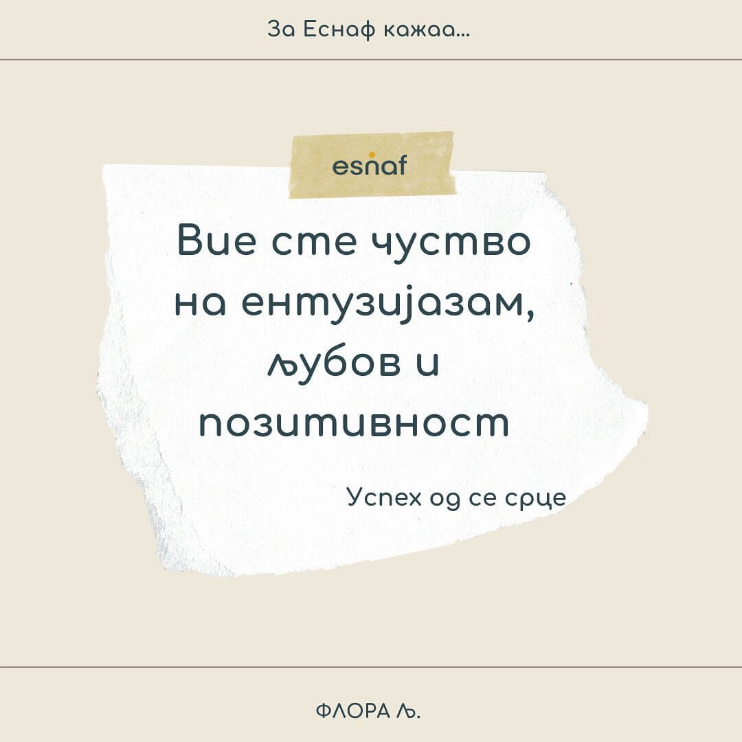 Tи благодариме што ја препознаваш мисијата на Еснаф и си дел од неа!